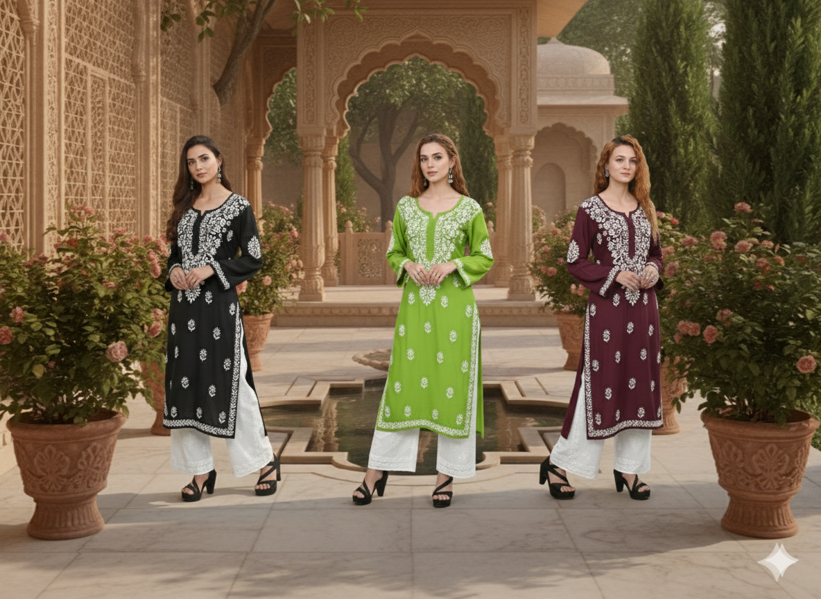 At Ms Chikan Arts, every Chikankari kurti is crafted by the skilled hands of women artisans from the villages near Lucknow — turning plain fabric into timeless beauty.