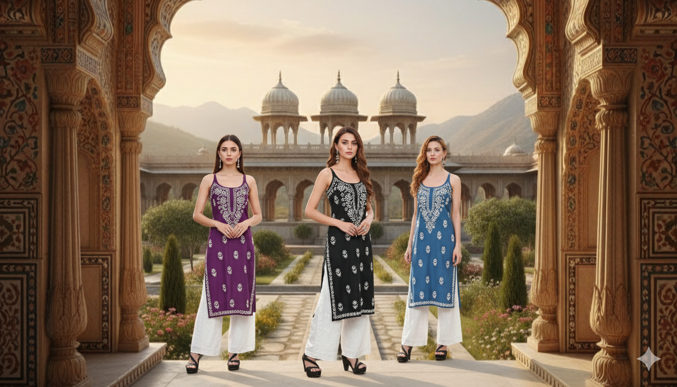 "MS CHIKAN ARTS: Your destination for handcrafted Chikankari Kurti Sets and elegant Plazos. Experience the finesse of Lucknow's legacy, redefined for modern grace."