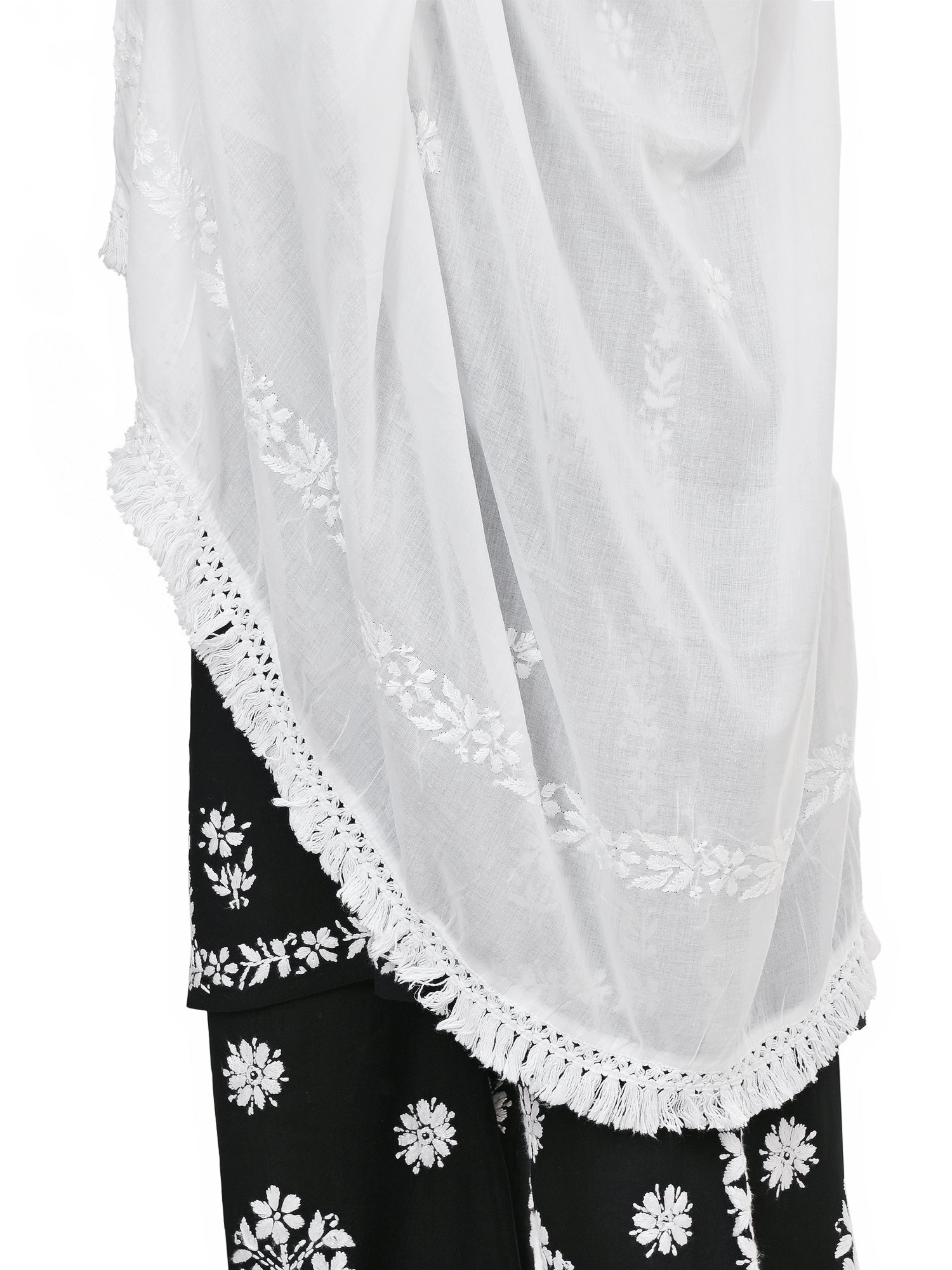 MS CHIKAN ARTS Women's Cotton Chikankari with Lace Border Dupatta